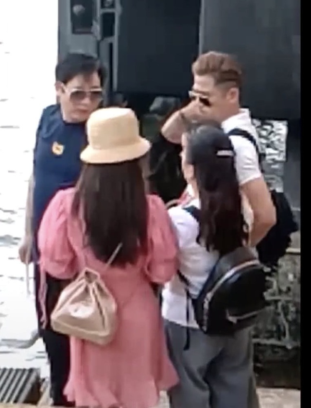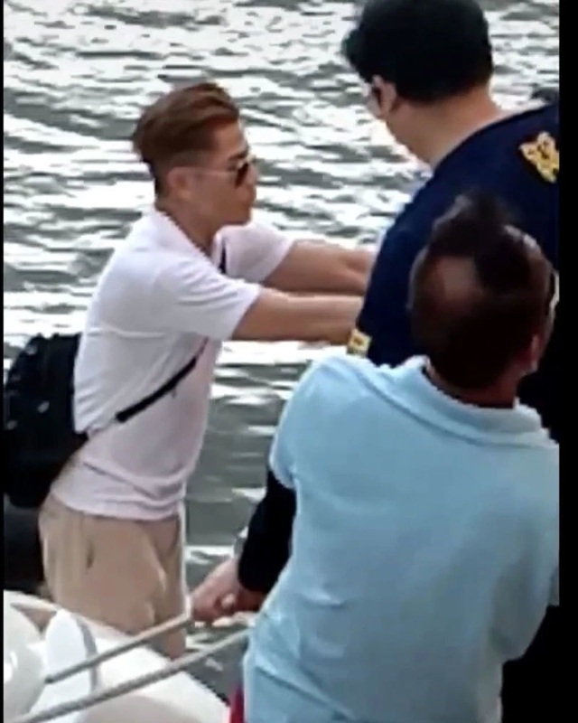 Quách Phú Thành rất cẩn trọng khi đỡ con gái xuống du thuyền. Cả nhà ngôi sao nổi tiếng đi dạo trên duy thuyền trước khi ghé vào một nhà hàng nổi tiếng thưởng thức hải sản.