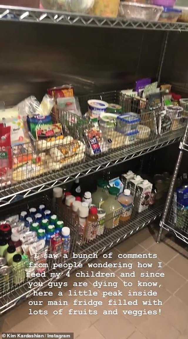 Kim Kardashian chụp ảnh bên tủ lạnh chỉ có sữa và nước khiến nhiều fans thắc mắc các con của cô ăn gì