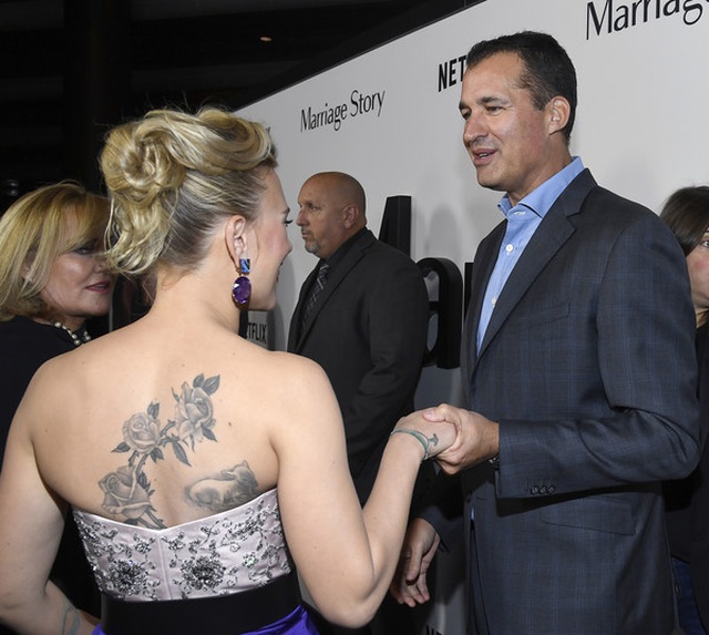 Scarlett Johansson dự buổi ra mắt bộ phim Marriage Story diễn ra ở Los Angeles, California, Mỹ ngày 5/11 vừa qua. Người đẹp 35 tuổi khoe hình xăm khủng trên lưng trần