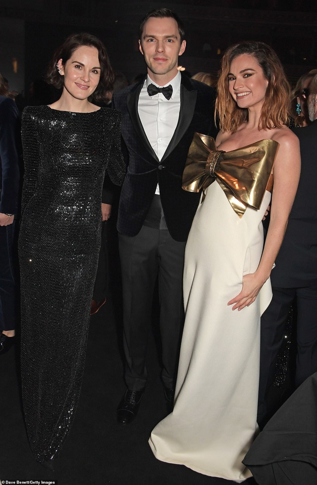 Michelle Dockery, Nicholas Hoult và Lily James vui vẻ trò chuyện tại sự kiện.