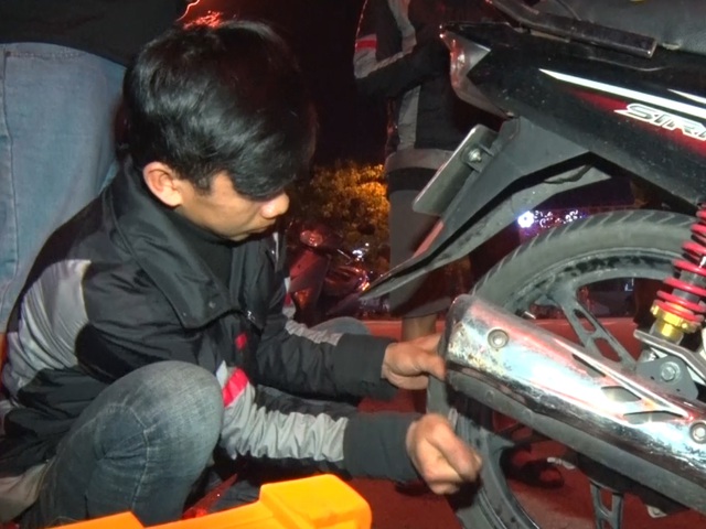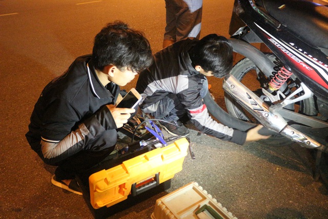 Khi đến nơi, các thành viên của nhóm nhanh tay lấy đồ nghề, cạy lốp xe. Khoảng 10 phút sau, chiếc xe bị thủng lốp được bơm căng trở lại và bàn giao chủ nhân. Cứ thế, mỗi đêm của nhóm SOS Đà Nẵng trôi qua, dù vất vả nhưng đổi lại là nụ cười của người gặp nạn.