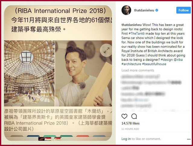 Những nỗ lực thực sự của Ngô Ngạn Tổ đã được trả giá xứng đáng, khi một trong bốn dự án xuất hiện trong show “Dream House” - công trình trung tâm tham quan Mulan Weichang - đã vừa nhận được đề cử tại giải thưởng kiến trúc quốc tế 2018 của Viện Kiến trúc Hoàng gia Anh - một giải thưởng được so sánh như giải Oscar trong giới kiến trúc.
