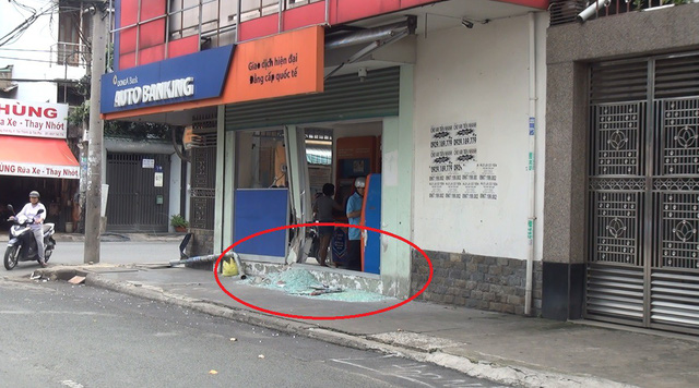 Vị trí cửa kính chịu lực bên hông trụ ATM bị vỡ vụn