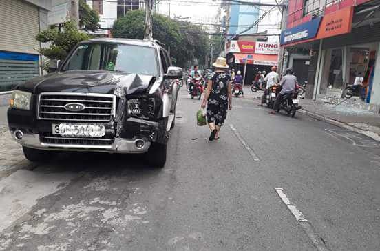 Nghe tiếng động mạnh, nhiều người chạy lại nhưng tài xế đã đánh xe rời khỏi hiện trường.
