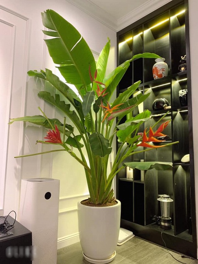 Hoa thiên điểu tạo màu xanh bắt mắt cho căn hộ.