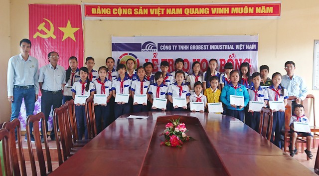 Lãnh đạo các trường cũng gửi lời cảm ơn đến Công ty Grobest Việt Nam, Quỹ Khuyến học Việt Nam, báo Dân trí đã đồng hành tài trợ những suất học bổng rất có ý nghĩa đối với các em học sinh có hoàn cảnh khó khăn. Món quà này là sự chia sẻ, động viên với các em học sinh cũng như gia đình của các em.