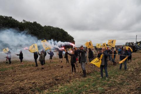Khoảng hơn 100 nông dân Pháp đã dùng máy kéo, pháp sáng, vẫy cờ của Liên minh nông dân Pháp và băng rôn "Phải trả lại đất cho nông dân" trên những cánh đồng từng là của họ để biểu tình phản đối một Tập đoàn Trung Quốc đang cố gắng đầu cơ tài chính ở đây.
