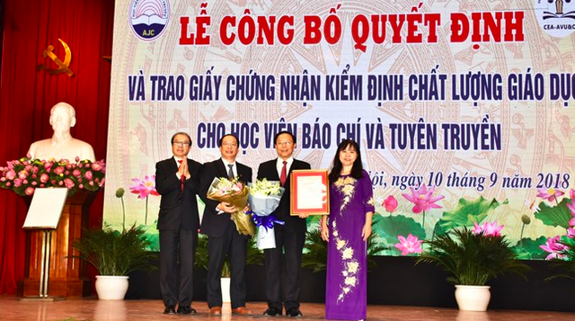 Ngày 10/9/2018, Học viện Báo chí và Tuyên truyền tổ chức Lễ Khai giảng năm học 2018 - 2019, công bố Quyết định và trao Giấy chứng nhận kiểm định chất lượng cơ sở giáo dục cho nhà trường.
