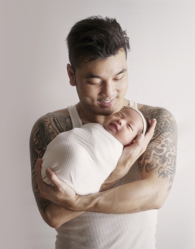 Con gái bé nhỏ của nam ca sĩ rất hợp tác khiến cho buổi chụp ảnh trở nên đơn giản và đầy tình cảm.