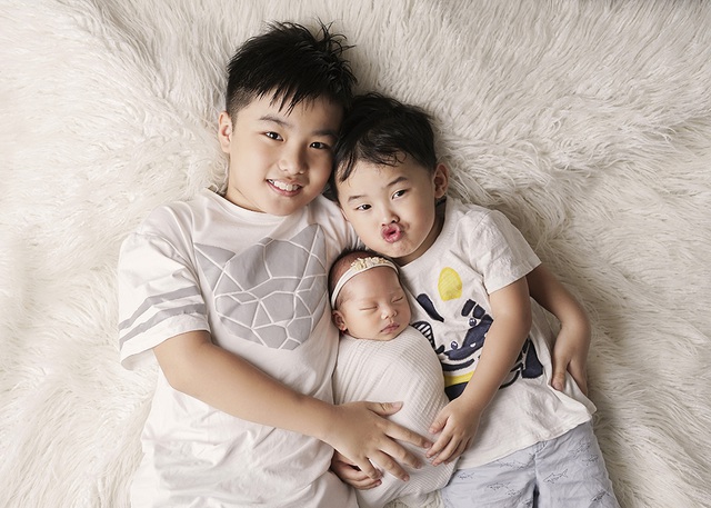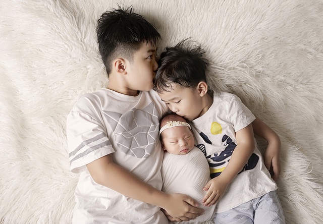 Hai con trai tuy còn nhỏ tuổi nhưng cũng ý thức được việc mình đã "lên chức" anh và rất thích nằm cạnh, hôn em gái nhỏ nhất nhà.