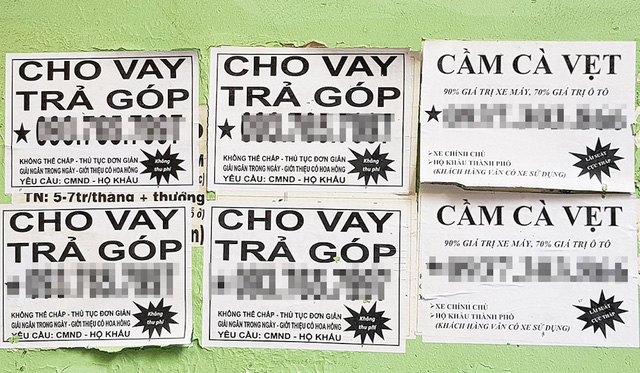 Nếu như trước đây người đi đường thường thấy hình ảnh “đập” ngay vào mắt là những tờ rơi về dịch vụ “hút hầm cầu” dán kín cột điện, tường rào thì nay được thay thế bằng các loại hình cho vay tín dụng với lời quảng bá không thể hấp dẫn hơn như: “cho vay nhanh, thủ tục đơn giản, không cần thế chấp, lãi suất ưu đãi…”.