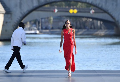 Cô trình diễn bên sông Seine.