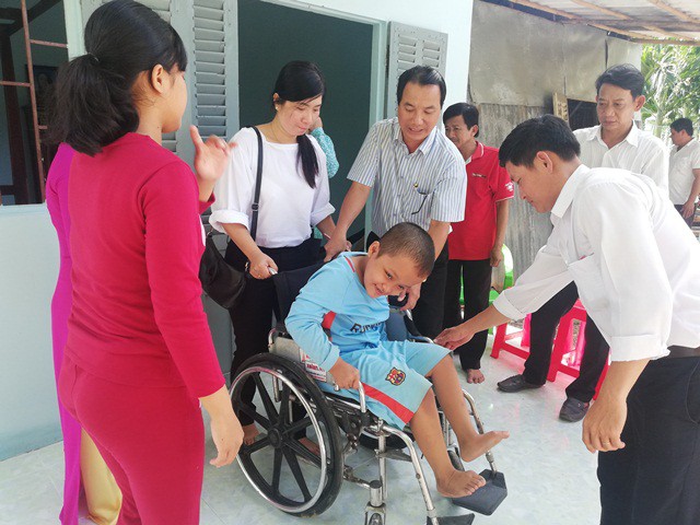Cùng đi với PV Dân trí có bà Nguyễn Phương Loan- Phó Chủ tịch Hội Chữ Thập đỏ tỉnh Bạc Liêu, ông Trần Văn Tuấn- Chủ tịch Hội Chữ Thập đỏ thị xã Giá Rai, cùng đại diện lãnh đạo HĐND, UBND xã Phong Thạnh A,...