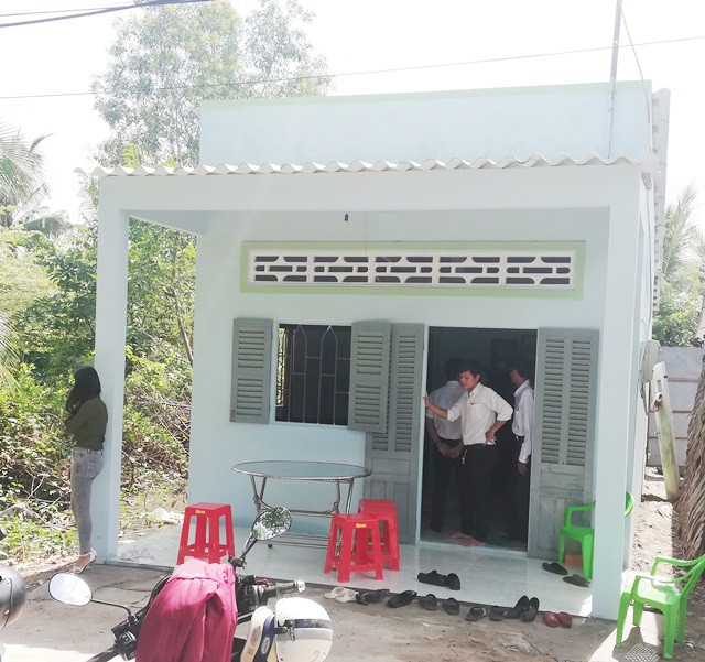 Căn nhà mới được cất lại trên nền nhà cũ, ngang hơn 4m, dài trên 10m, gồm một phòng khách, một phòng ngủ, nhà bếp,... với tổng giá trị trên 70 triệu đồng.