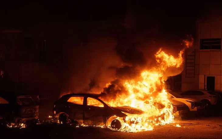 Xe ô tô bốc cháy sau đợt tấn công của Nga tại Kiev, Ukraine, ngày 16/4/2026. (Ảnh: AP)