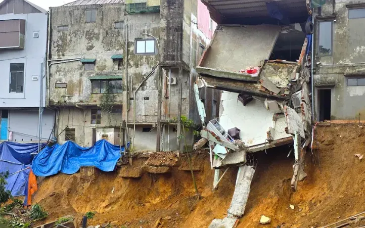 Sụt trượt ở khu vực đường Hùng Vương tại thôn 3A, Khe Sanh. Ảnh: PLO