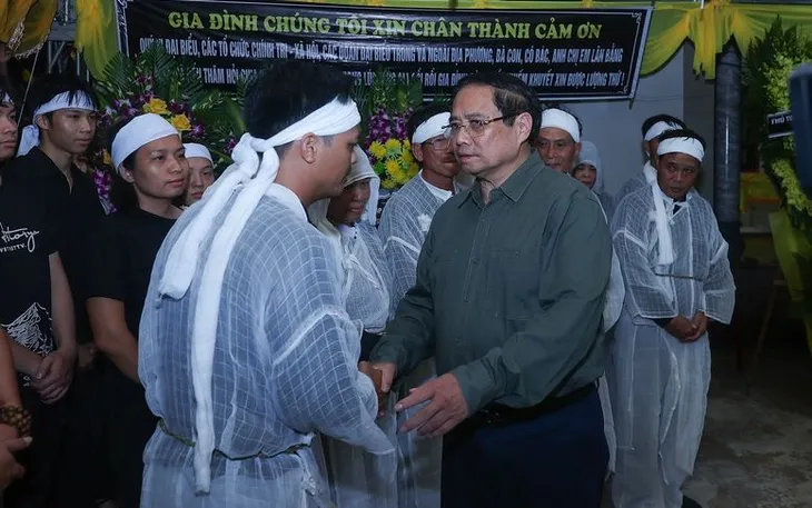 Thủ tướng Phạm Minh Chính thăm hỏi, chia buồn với các gia đình có người bị nạn do thiên tai - Ảnh: VGP