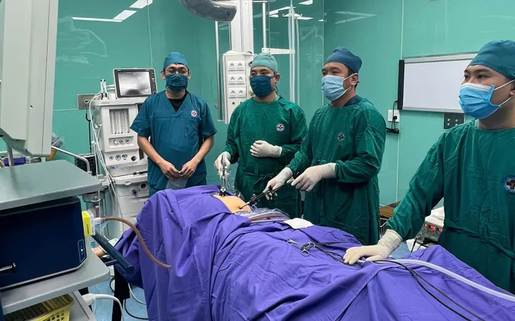 Ca mổ được thực hiện bằng phương pháp nội soi do BSCKI. Trịnh Văn Thủy - Trưởng khoa Ngoại Tổng hợp, cùng ekip gây mê và phẫu thuật của bệnh viện tiến hành. Trong quá trình phẫu thuật, ekip phát hiện một mảnh xương cá nằm ở đoạn ruột non, cách góc hồi - manh tràng khoảng 150 cm, gây thủng thành ruột. Dị vật đã được lấy ra, xử trí tổn thương ruột và làm sạch ổ bụng.
