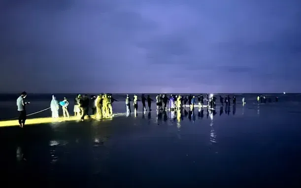 Tối 11/11, các lực lượng chức năng và người dân đã trục vớt, kéo được chiếc thuyền gặp nạn đưa vào bờ. (Ảnh: SGGP)