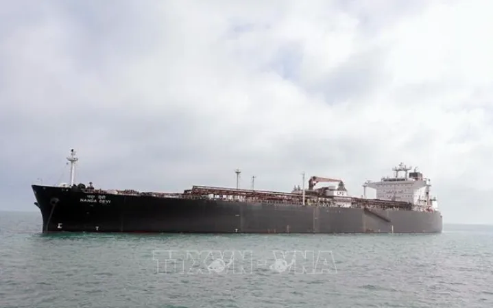 Tàu chở khí hóa lỏng Nanda Devi cập cảng Vadinar, bang Gujarat, Ấn Độ, sau khi di chuyển qua eo biển Hormuz, ngày 17/3/2026 (Ảnh: ANI/TTXVN)