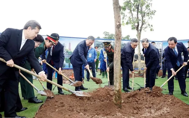 Tổng Bí thư Tô Lâm và các đại biểu tham gia trồng cây tại Lễ phát động “Tết trồng cây đời đời nhớ ơn Bác Hồ” Xuân Bính Ngọ 2026. (Ảnh: TTXVN)