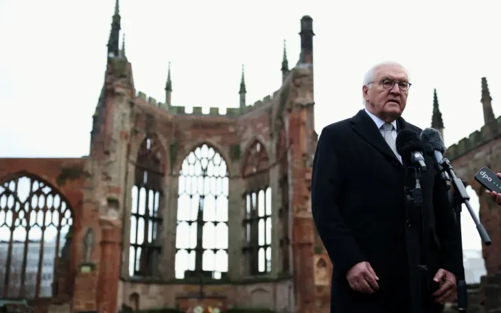 Tổng thống Đức Frank-Walter Steinmeier phát biểu với báo chí tại Coventry, Anh, ngày 5/12/2025 (Ảnh: AP)