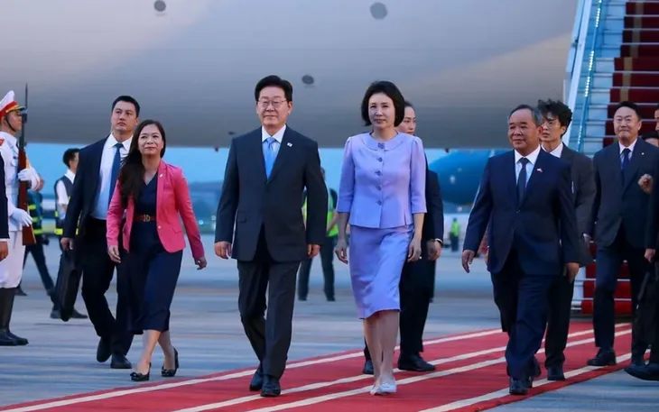 Tổng thống Hàn Quốc Lee Jae Myung và Phu nhân đến Hà Nội, bắt đầu chuyến thăm cấp Nhà nước tới Việt Nam. (Ảnh: TTXVN)