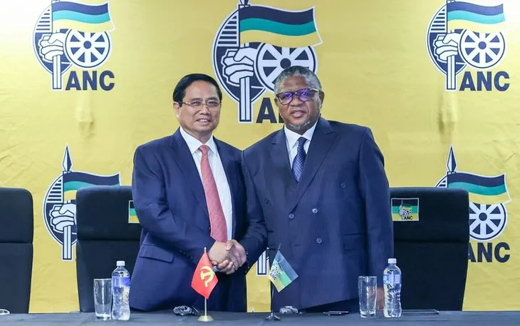 Trên tinh thần đó, Thủ tướng Chính phủ đề nghị hai Đảng tiếp tục củng cố tin cậy chính trị, tập trung triển khai hiệu quả Bản ghi nhớ về hợp tác giữa Đảng Cộng sản Việt Nam và Đảng ANC ký tháng 5/2025 vừa qua, tăng cường tiếp xúc, trao đổi đoàn các kênh, các cấp, nhất là cấp cao, đẩy mạnh trao đổi kinh nghiệm lãnh đạo, xây dựng đảng, giải quyết các vấn đề kinh tế, xã hội của đất nước, tăng cường hợp tác kinh tế, thương mại và đầu tư theo hướng thực chất, hiệu quả, phát huy nguồn lực, thế mạnh, bổ sung cho nhau để phát triển. Thông tin về chiến lược phát triển đất nước, Thủ tướng Chính phủ đề nghị Đảng ANC và Nam Phi nói chung hợp tác, ủng hộ Việt Nam đạt các mục tiêu 100 năm.