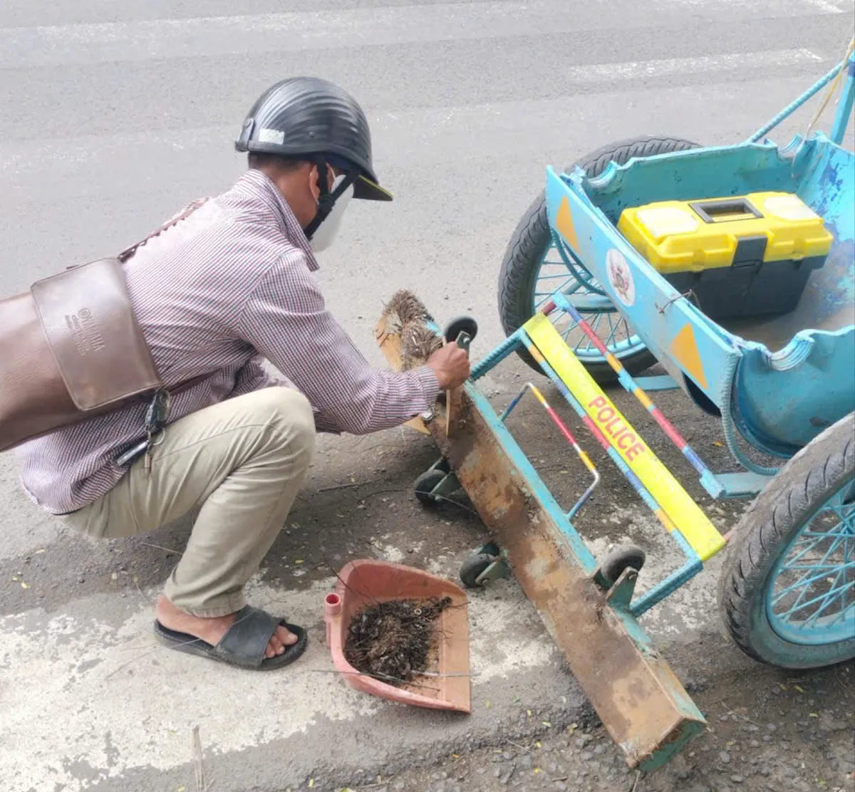 Dù các tổ công tác thường xuyên hút đinh, thu gom dị vật kim loại, nhưng tình trạng này vẫn tái diễn, gây nguy cơ mất an toàn giao thông.