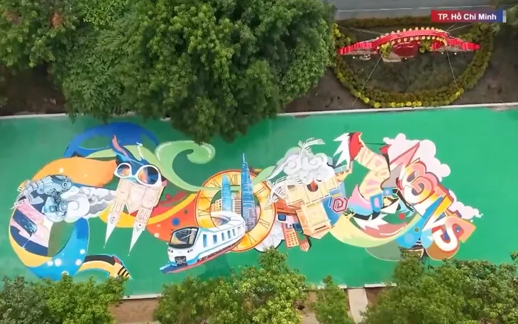 Ngay tại quảng trường trung tâm, bãi cỏ xanh được thiết kế với hình ảnh đàn ngựa - linh vật Tết Bính Ngọ 2026. Hàng chục nghìn loài hoa đủ sắc màu được bày trí khắp công viên tạo nên một không gian rực rỡ sắc màu.