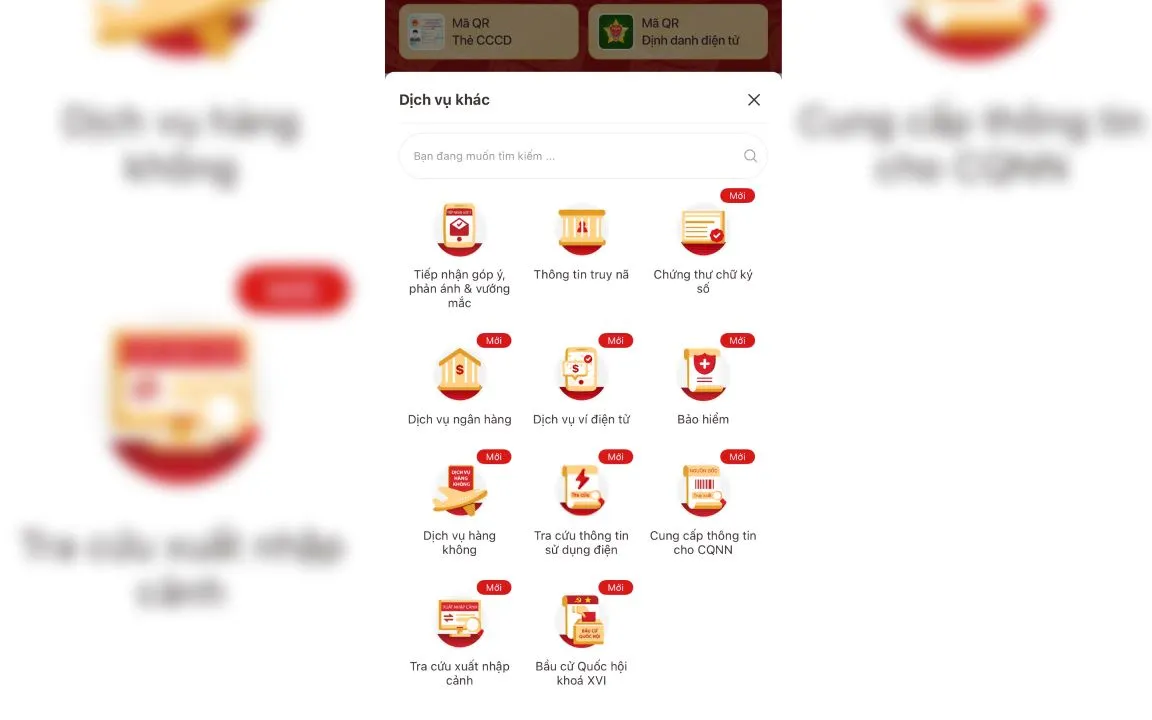 - Từ giao diện chính của ứng dụng, chọn "Dịch vụ khác", sau đó chọn "Bầu cử Quốc hội khóa XVI". Nhập mật khẩu bảo vệ dữ liệu của VNeID để tiếp tục.