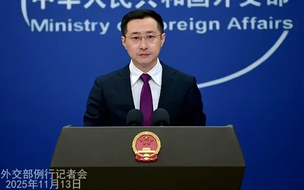 Người phát ngôn Bộ Ngoại giao Trung Quốc Lâm Kiếm trong cuộc họp báo chiều 13/11/2025 (Ảnh: Bộ Ngoại giao Trung Quốc)