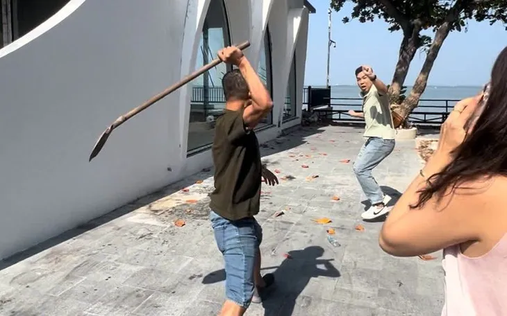 Đặng Trần Quốc V. dùng xẻng đuổi đánh nam du khách.