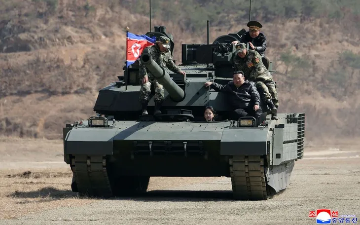 Nhà lãnh đạo Kim Jong Un cùng con gái Kim Ju Ae tại căn cứ huấn luyện quân sự Triều Tiên ngày 19/3/2026 (Ảnh: KCNA/AP)