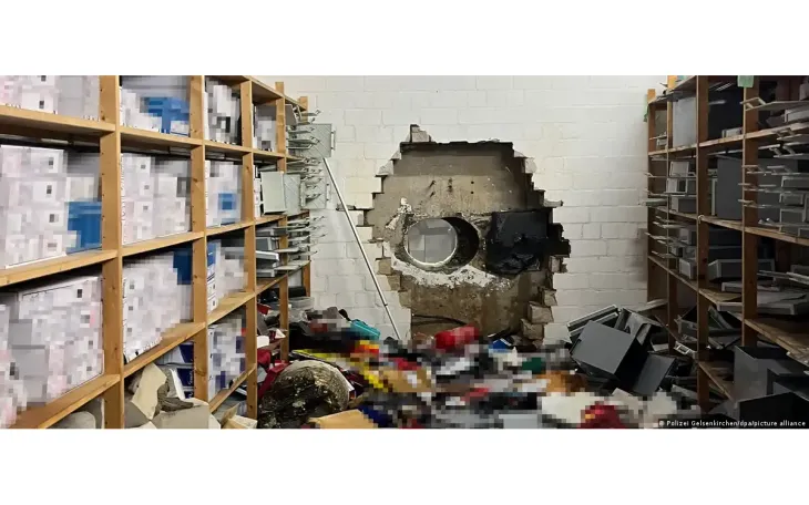 Theo thông tin ban đầu, các đối tượng đã đột nhập vào kho tiền của một chi nhánh ngân hàng tiết kiệm Sparkasse bằng cách khoan từ bãi đỗ xe ngầm bên ngoài, tạo một lỗ lớn xuyên tường để tiếp cận khu vực két sắt. Sau khi lấy được tài sản, nhóm này đã tẩu thoát theo chính lối đi đã khoan.