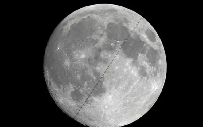 Ảnh ghép nhiều lớp chụp ngày 4/11/2025 từ thủ đô Bắc Kinh, cho thấy trạm vũ trụ Trung Quốc bay ngang qua phía trước Mặt Trăng. (Ảnh: Xinhua)