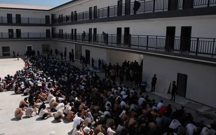Những người được cho là nạn nhân của các đường dây lừa đảo bị giam giữ tại Myawaddy, miền Đông Myanmar, ngày 26/2/2025 (Ảnh: AP)