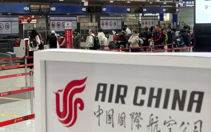 Hành khác xếp hàng trước quầy của hãng hàng không Air China để chờ chuyến bay thẳng giữa Bắc Kinh và thủ đô Bình Nhưỡng của Triều Tiên, tại sân bay quốc tế Thủ đô Bắc Kinh, Trung Quốc, ngày 30/3/2026 (Ảnh: Kyodo News/AP)