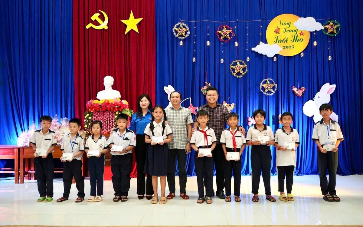Các học sinh từ Trường TH-THCS Mỹ Bình, Trường Tiểu học Phú Tân và Trường Tiểu học Tân Hải được tham gia nhiều hoạt động gần gũi, giàu ý nghĩa giáo dục như làm lồng đèn tái chế – những chiếc đèn rực rỡ được tạo nên từ vật liệu thân thiện môi trường, vừa khơi gợi tinh thần sáng tạo, vừa nhắc nhở ý thức tiết kiệm, bảo vệ thiên nhiên. Quầy bánh tuổi thơ – gian hàng 0 đồng mang đến hương vị quen thuộc cùng những món quà cần thiết cho học tập và sinh hoạt. Bên cạnh đó, các em được dùng bữa cơm nóng hổi, cắt tóc miễn phí và nhận thêm sự quan tâm từ các tình nguyện viên.