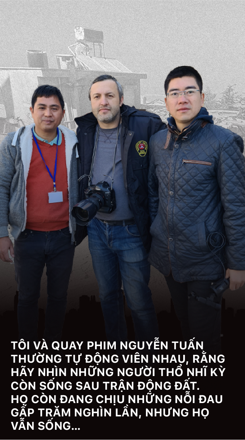 Thực tế thì nhóm phóng viên các nước khác tác nghiệp tại trận động đất, cũng đều phải chấp nhận một mối rủi ro nhất định như vậy. Không cách nào khác được. Nhưng chúng tôi chưa bao giờ cảm thấy mình muốn quay đầu trong cuộc hành trình này. Bởi 2 yếu tố. Một là nhìn vào thân phận của những người dân tại khu vực động đất, họ đang còn khốn khổ hơn mình rất nhiều. Và hai, "cuộc hành quân của lòng nhân ái", như cách ví von của người Thổ Nhĩ Kỳ với chiến dịch cứu hộ cứu nạn của Việt Nam, nó thật sự rất ý nghĩa.
