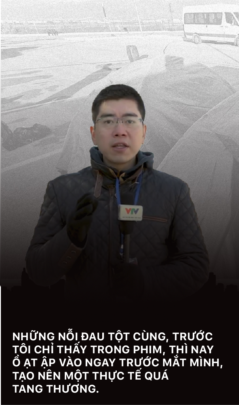 - Sinh ra trong thời bình, trong trí tưởng tượng, tôi cũng chưa bao giờ nghĩ, đến một ngày mình sẽ trải nghiệm cảnh sống không có lấy một mái nhà, giữa trời mùa đông âm độ. Hay phải tác nghiệp như bình thường, từ ghi hình, phỏng vấn, dẫn hiện trường cho tới dựng phim... trong một không gian mà bên cạnh là không ít tử thi của những người xấu số.