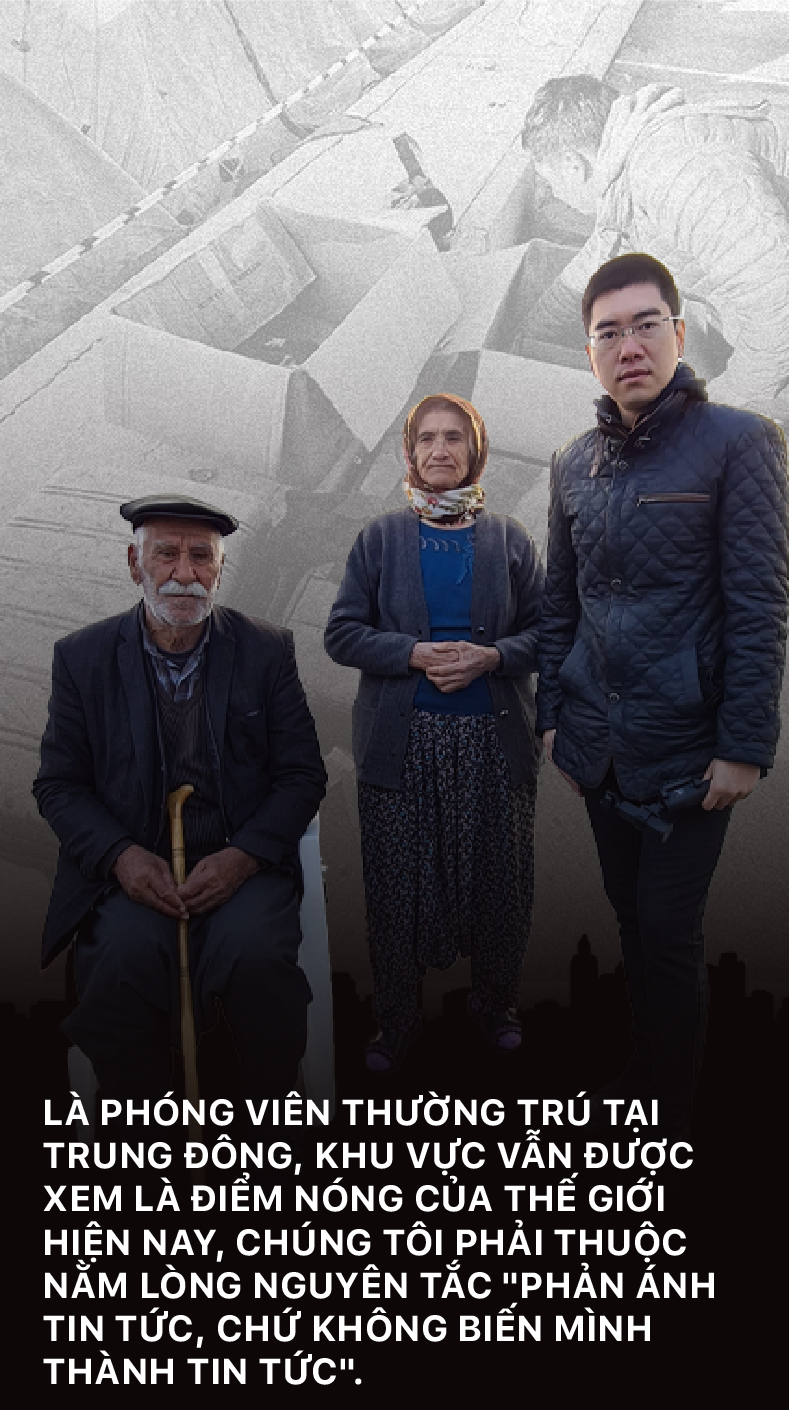 - Trước khi chúng tôi lên đường, các lãnh đạo VTV đều nhấn mạnh với chúng tôi một thông điệp: "An toàn phải là trên hết". Tôi xem đây không chỉ là lời nhắn nhủ, mà là một mệnh lệnh. Sẽ không có phóng sự, thước phim nào được xem là thành công nữa, nếu nó đánh đổi bởi sự an toàn của nhóm phóng viên. Là phóng viên thường trú tại Trung Đông, khu vực vẫn được xem là điểm nóng của thế giới, chúng tôi là càng phải thuộc nằm lòng nguyên tắc "phản ánh tin tức, chứ không biến mình thành tin tức".