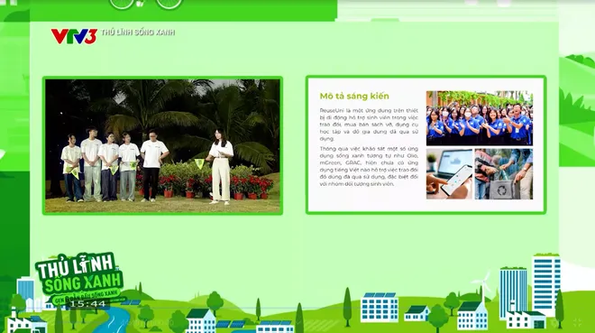 Nguyễn Thị Trung Chiến (trường Đại học Luật - ĐHQGHN) đưa ra ý tưởng về ứng dụng ReuUni-Cuộc đời mới cho đồ dùng, nơi các bạn sinh viên trao đổi, mua bán đồ dùng học tập, sách vở, đồ gia dụng, giảm lãng phí tài nguyên, tiết kiệm chi phí. Dương Hải Phong (VinUniversity) táo bạo với dự án kết nối các dự án về môi trường nhỏ lẻ, kết nối với cộng đồng sống xanh. Đoàn Thị Tố Quyên (Đại học Kinh tế thành phố Hồ Chí Minh) giới thiệu dự án Đô thị xanh giảm phát thải, hướng tới mục tiêu nâng cao nhận thức của người dân và phân loại rác thải, biến rác thành tài nguyên.