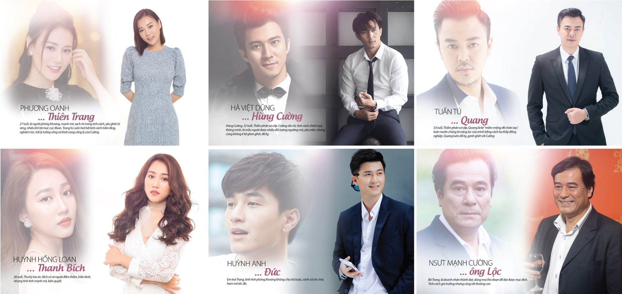 Tuyến nhân vật của Lã Thanh Huyền, Nhan Phúc Vinh và Diễm My 9x sẽ tạo thành một tam giác tình yêu mới của màn ảnh Việt. Mạnh Trường sau những vai chính diện sẽ trở lại, thách thức chính bản thân mình với một nhân vật phản diện. Sau Ngày ấy mình đã yêu, Nhan Phúc Vinh sẽ khiến trái tim của những khán giả nữ lại một lần nữa bồi hồi đập vì được ngắm vẻ ngoài soái ca cùng diễn xuất vô cùng cuốn hút của anh. Diễm My 9x, gương mặt nữ lần đầu tiên tham gia phim truyền hình của VFC và Lã Thanh Huyền, gương mặt quen thuộc qua nhiều bộ phim hứa hẹn sẽ có màn "đối đầu" vô cùng ấn tượng.
