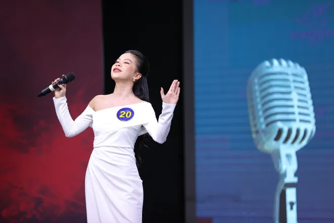 Một thí sinh Sao Mai 2022 Khu vực miền Trung - Tây Nguyên trong buổi tổng duyệt trước đêm thi cuối cùng.