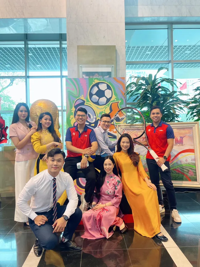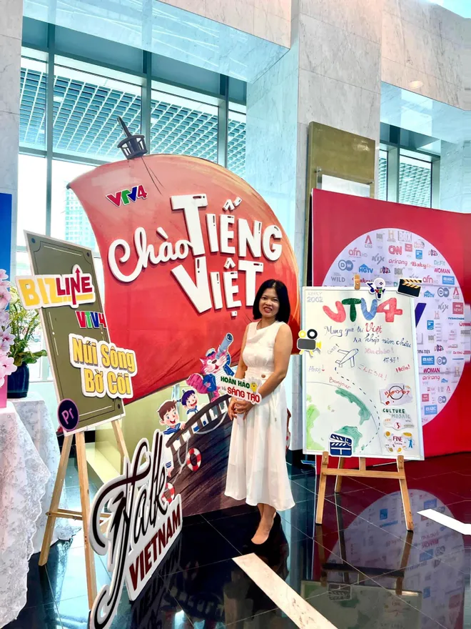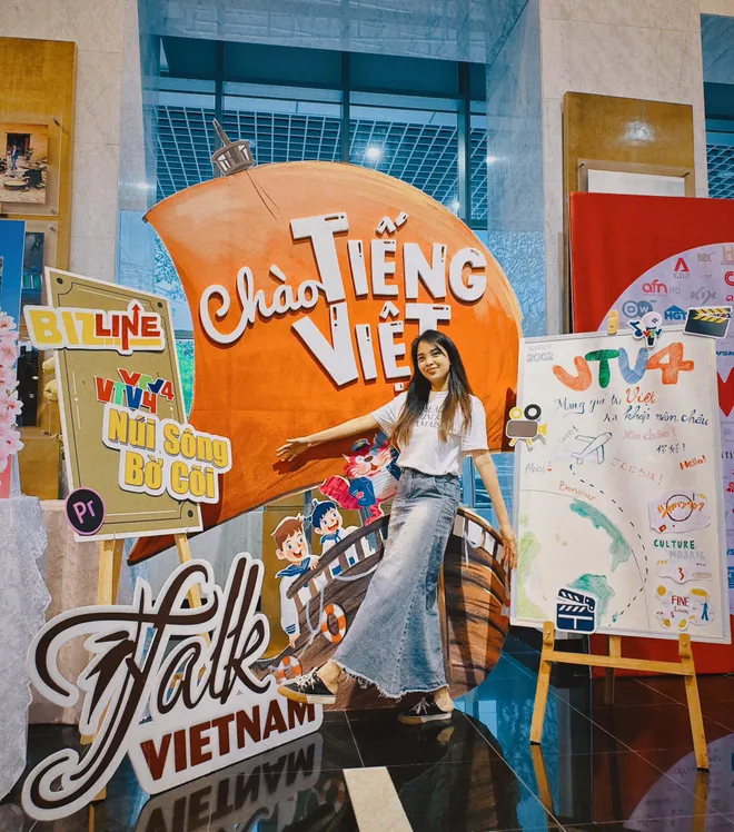 Các MC, BTV của Ban Truyền hình tiếng dân tộc bên góc check-in độc đáo
