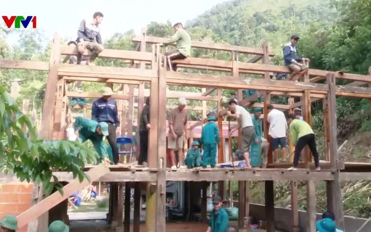 Từ sáng sớm, hàng chục cán bộ, chiến sĩ Trung đoàn 877, Bộ Chỉ huy Quân sự tỉnh Tuyên Quang cùng chính quyền địa phương khẩn trương giúp người dân tháo dỡ, di dời nhà đến nơi an toàn hơn.