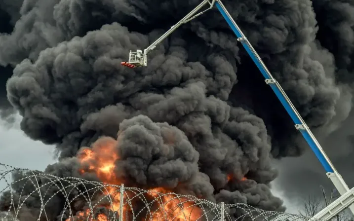 Thiết bị chữa cháy được nhìn thấy trong vụ hỏa hoạn tại một kho dầu ở Voronezh, Nga (Ảnh: SOPA/Getty Images)