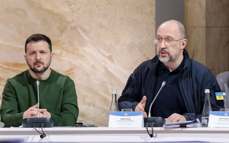 Ông Denys Shmyhal (phải) trong một cuộc họp cùng Tổng thống Zelensky (Ảnh: Wiki)