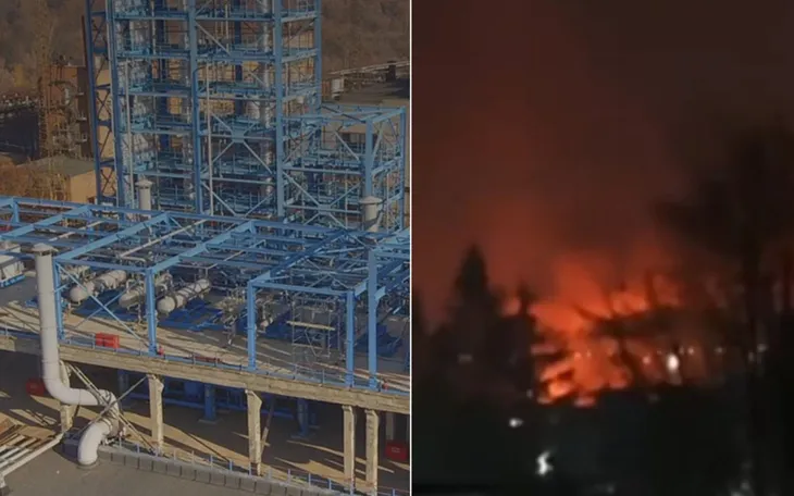 Cháy tại nhà máy cao su ở thành phố Yefremov, tỉnh Tula, Nga, ngày 24/12/2025 (Ảnh: Exilenova+)